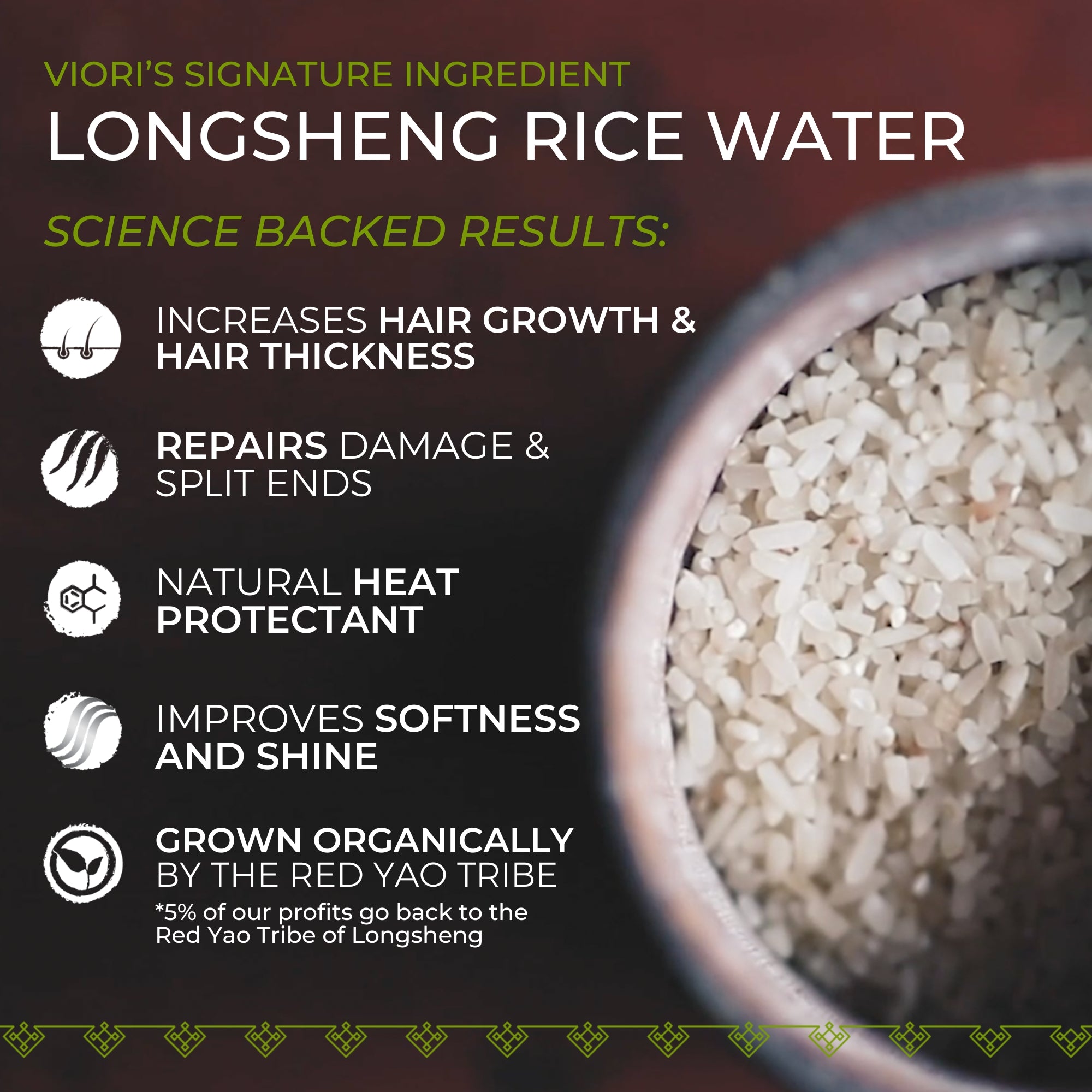 - Formulated with Longsheng rice water, it boosts volume, improves hair health, and leaves hair soft and revitalized—all without synthetic fragrances.